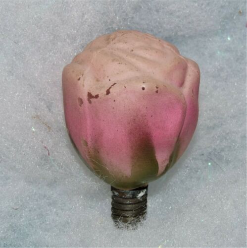 Title (ebay affiliate link): Antique Vtg~2"+ PINK ROSE~GREEN LEAVES~Molded Glass XmasTree Light Bulb~WORKS!