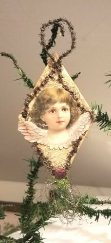 Title (ebay affiliate link): Angel Bust on Crepe Paper Backing. Small Paper and tinsel. Germany 1880s
