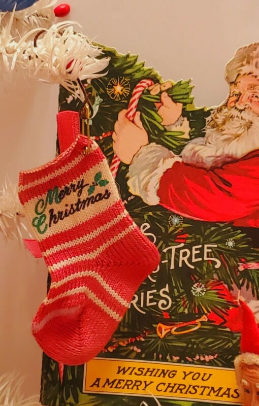 Title (ebay affiliate link): TINY Vintage 1920''s MERRY CHRISTMAS Stocking Ornament For Toys or Candy Holder