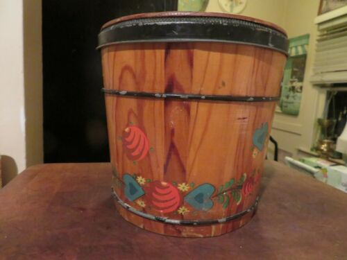 Antique FIRKIN Old Floral Painted PRIMITIVE Wood SUGAR BUCKET