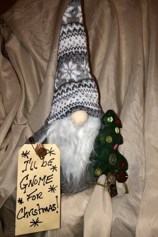 Title (ebay affiliate link): Primitive Christmas Gnome with Tree I''ll be Gnome for Christmas 14 inches tall