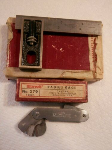 2 LS Starrett Machinist Tools - Radius Gauge #279, Slide Square #4 - USA Tools