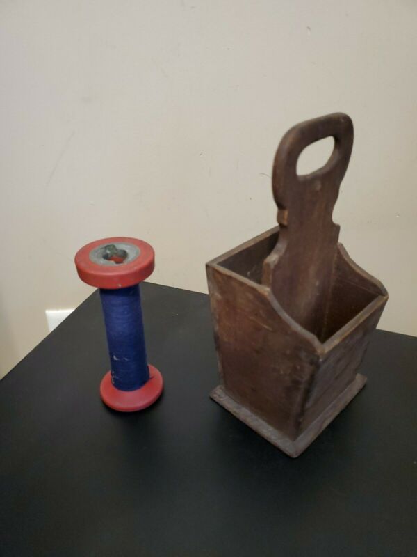 Title (ebay affiliate link): Primitive Wooden Spoon Holder & 5" Red Wood Spool with Thread