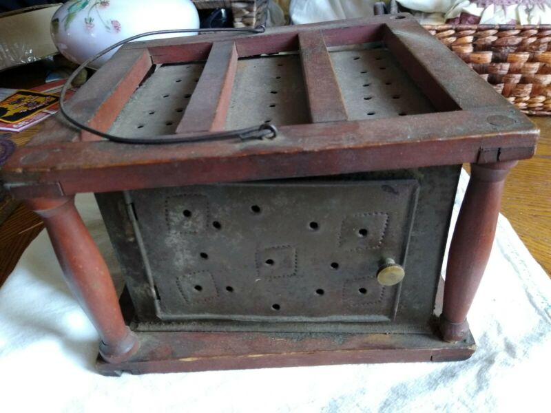 Title (ebay affiliate link): Antique Primitive Carriage Foot Warmer Wood & Pierced Tin Heart Detail
