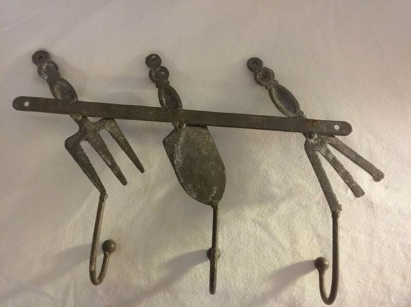 Vintage Primitive/Folk Art Gardening Tools Wall Hooks