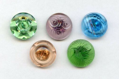 5 GORGEOUS VINTAGE DEPRESSION GLASS buttons--BLUE--PINK--LAVENDER--GREEN--3/4"