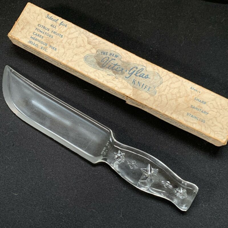 Title (ebay affiliate link): Vintage Vitex-Glas Clear Depression Glass Knife Serving w/ Box Cake Wedding