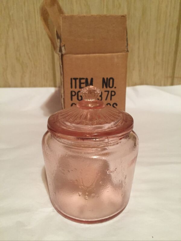 Title (ebay affiliate link): Miniature Depression Glass Biscuit Jar Cookie Jar Pink