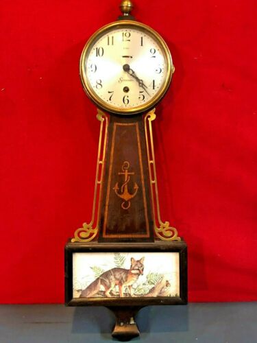 1930''s Sessions 8-Day No.838 Banjo Clock w/Early Fox Scene - Working! w/Key