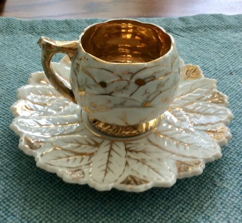 Dresden Hirsch White Gold Leaf Demitasse Tea Cup & Saucer Germany