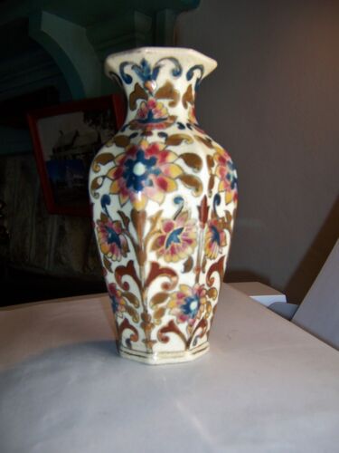 antique Hungarian Art Pottery Hand Painted , Fischer Budapest, Vase 6 1/2 inch