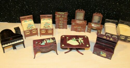 LOT 12 PIECES of VINTAGE/PLASTIC DOLLHOUSE RENWAL FURNITURE PIANO/BEDROOM