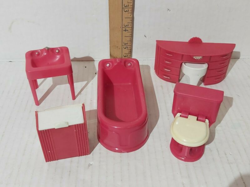 Vintage Dollhouse Furniture Plasco Bathroom Furniture Vanity Sink Tub Toilet USA