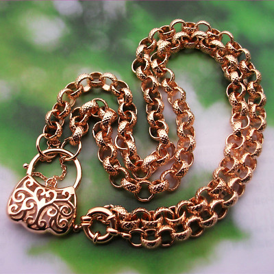 9ct Rose Gold GF Solid Necklace & Padlock "Stamped 9K"
