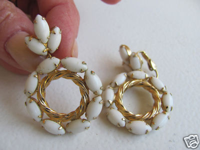 VTG 'WEISS' SIGNED WHITE MILK GLASS CLIP-ON EARRINGS GC