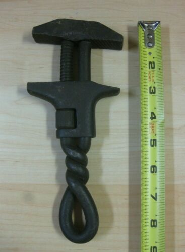 Vtg Antique TWISTED HANDLE PIPE WRENCH 8 1/2" cast iron DOUBLE SIDED unmarked