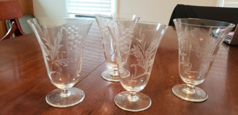 Title (ebay affiliate link): Set of 4: Vintage Etched Clear Glass Footed Water Glasses, Leaf and Dot