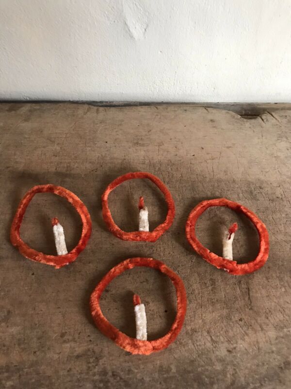4 Big Old Chenille Christmas Feather Tree Ornaments Japan Candle In Wreath AAFA