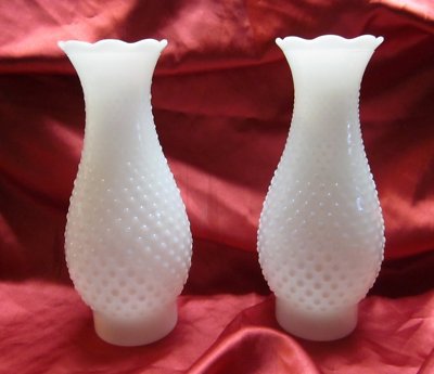 PAIR/2 WHITE MILK GLASS HOBNAIL OIL LAMP CHIMNEY/SHADE