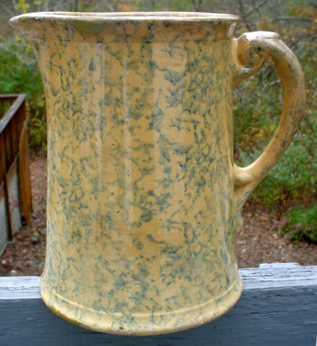 Title (ebay affiliate link): ANTIQUE EARLY PRIMITIVE RARE COLOR SPONGEWARE DECORATED STONEWARE WATER PITCHER