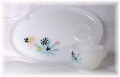 Federal Glass Milk Glass Retro 1950's Snack Set for 4