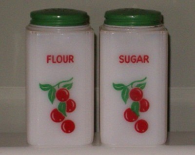 Title (ebay affiliate link): PAIR SUGAR FLOUR SHAKER CHERRY MILK GLASS TIPP