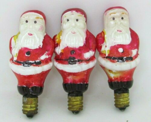 Title (ebay affiliate link): Set (3) Vintage Milk Glass SANTA Christmas Tree 120V Light Bulbs, 2 Working