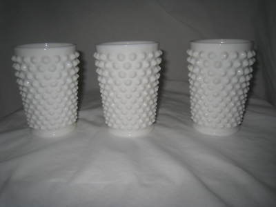 3 FENTON HOBNAIL MILK GLASS TUMBLER (S)