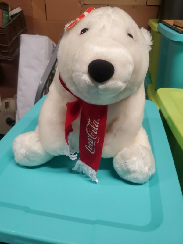 NEW LARGE 30" COCA-COLA STUFFED POLAR BEAR WITH RED SCARF