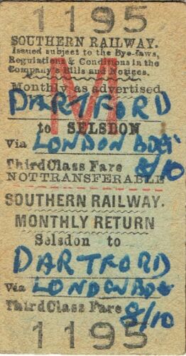 Title (ebay affiliate link): Railway ticket SR Selsdon third class monthly return 1955