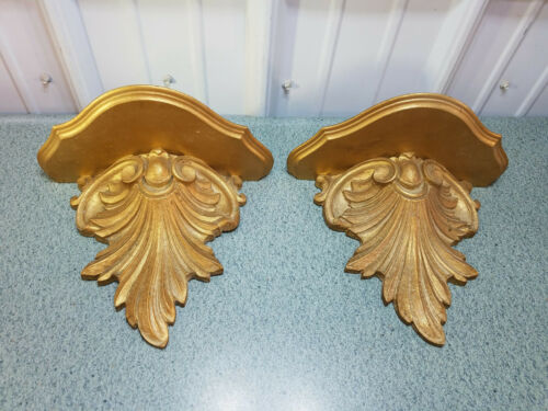 Vintage SYROCO WOOD Wall Sconces Shelves Antique Hollywood Regency