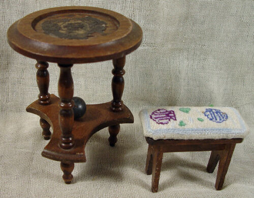 Vintage Doll House Miniature Furniture Table and Bench
