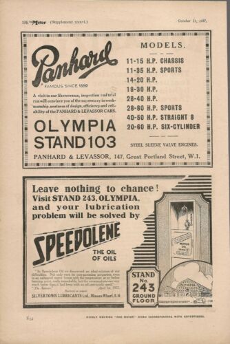 ORIGINAL VINTAGE 1927 PANHARD ENGLISH MAGAZINE ADVERT