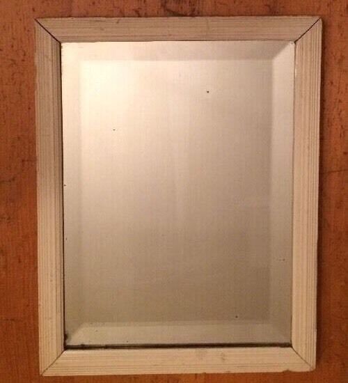 Antique BEVELED Wall Mirror White PAINTED WOOD Frame Home Decor
