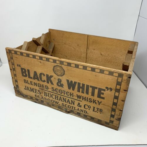 Vintage BLACK & WHITE SCOTCH WHISKEY Wood Crate James Buchanan & Co. Glasgow