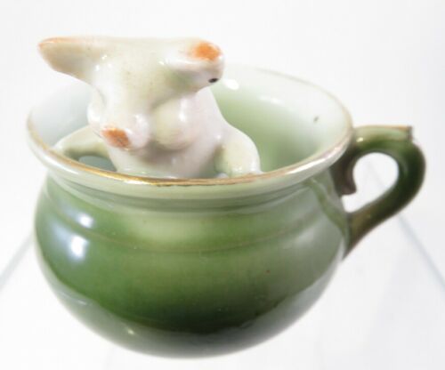 ANTIQUE PINK PIGS GERMAN FAIRING FIGURINE PORCELAIN PIG IN A CHAMBER POT
