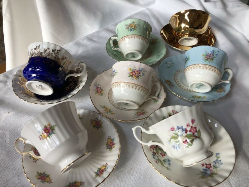 Lot of Seven China Teacups And Saucers