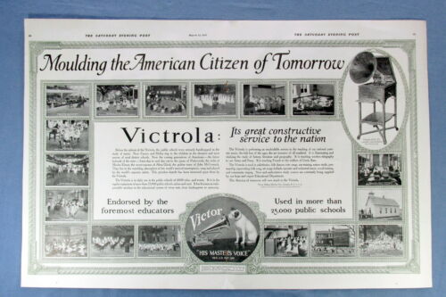 1918 Double Page Magazine AD for VICTROLA XXV Phonograph Made for SCHOOL Use
