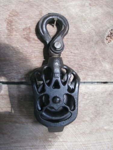 Title (ebay affiliate link): Antique cast Iron Early Meyers Hay Trolley Center drop Barn pulley