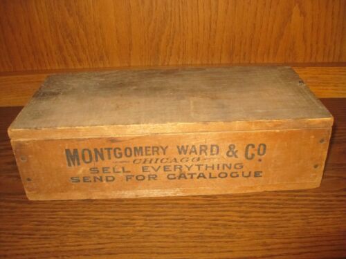 ANTIQUE MONTGOMERY WARD & CO WOODEN BOX; ADVERTISING CRATE