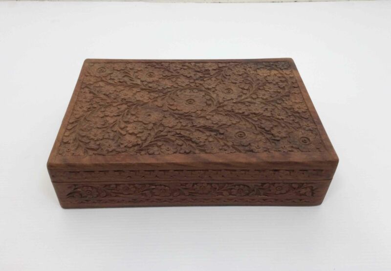Hand Crafted Wooden Carved Embossed Floral Motif Box
