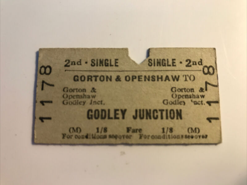 Title (ebay affiliate link): British Railways ticket 1178 - Gorton & Openshaw to Godley Junction 1967