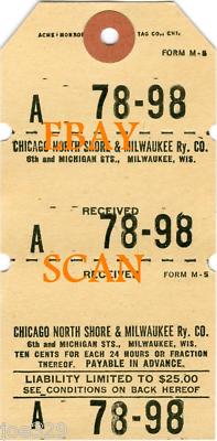 Title (ebay affiliate link): CHICAGO, NORTH SHORE & MILWAUKEE RAILWAY BAGGAGE CHECK