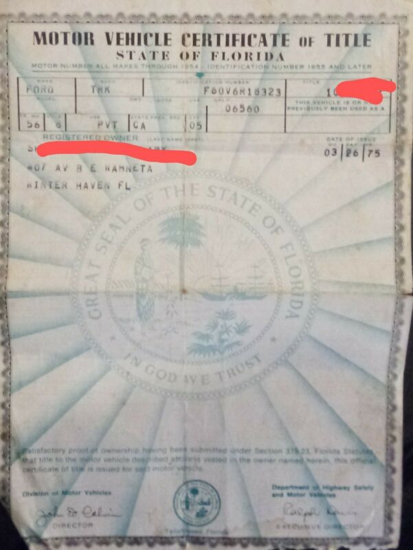 Title (ebay affiliate link): Historical Documents 1956 F60 Truck Title-Florida