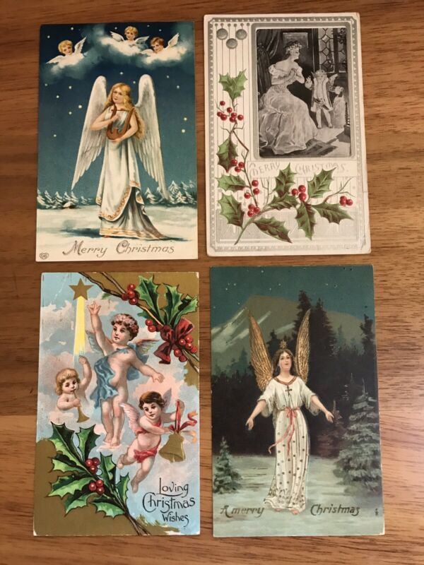 Lot Of 4 EARLY WINGED ANGELS CHRISTMAS POSTCARDS