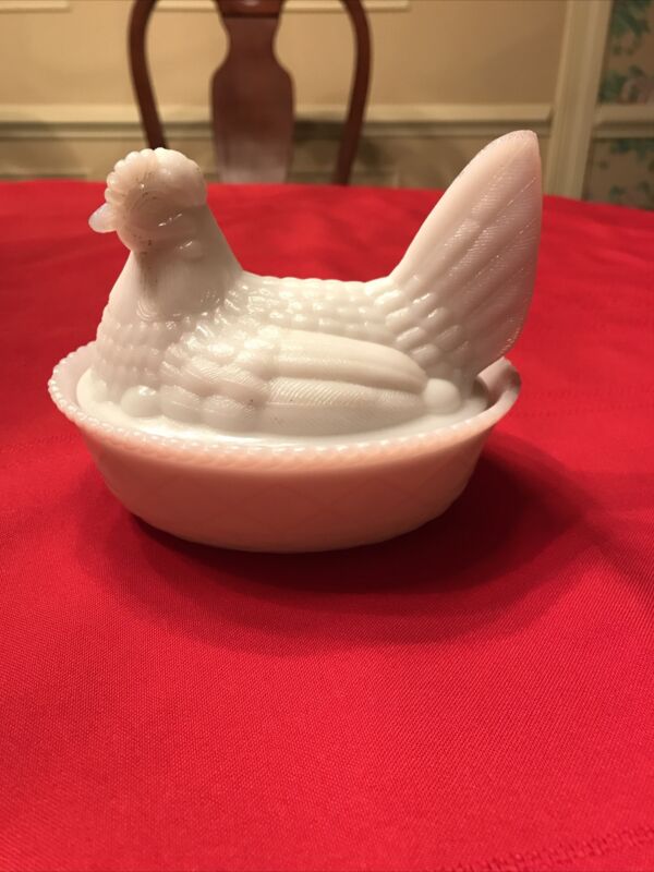 Vintage Milk Glass Hen on Nest Chicken Candy Dish