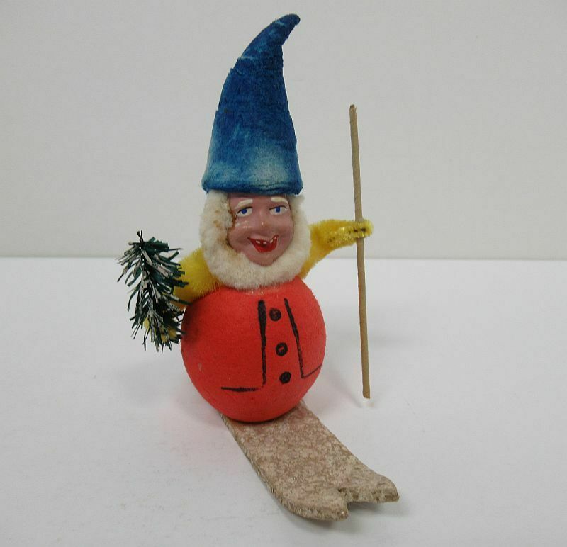 Title (ebay affiliate link): Vintage Christmas Elf Gnome Ski Skiing Figure Paper Mache Felt Germany yz4445