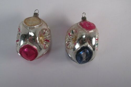 2 Antique Mercury Glass Christmas Ornaments Triple Indented Flowers -- Germany