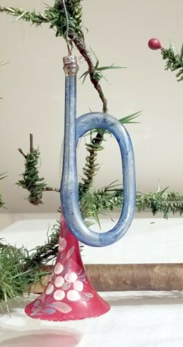 Title (ebay affiliate link): Red, White, & Blue Patriotic Glass Horn, with some wear. 1920s German
