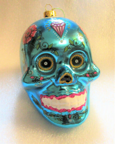 Title (ebay affiliate link): DAY OF THE DEAD Skull Face Painting October Halloween Christmas Glass Ornament